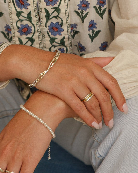 Materials: Sterling Silver, 18KT Gold plating, Freshwater Pearls