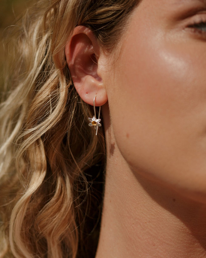 Silver Daffodil Hook Earrings