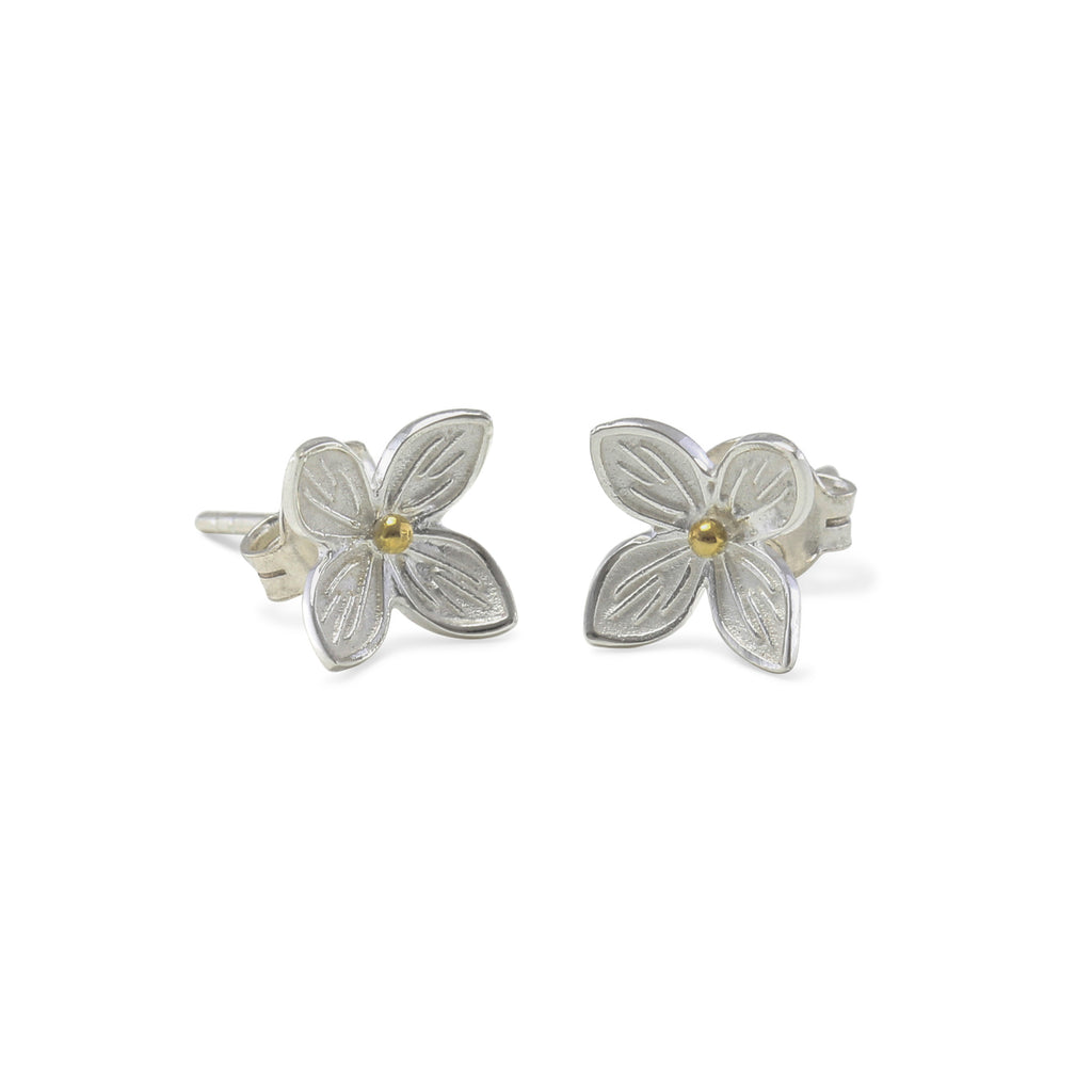 Dainty Sterling Silver and Four 18KT Gold Plated Pips Flower Studs