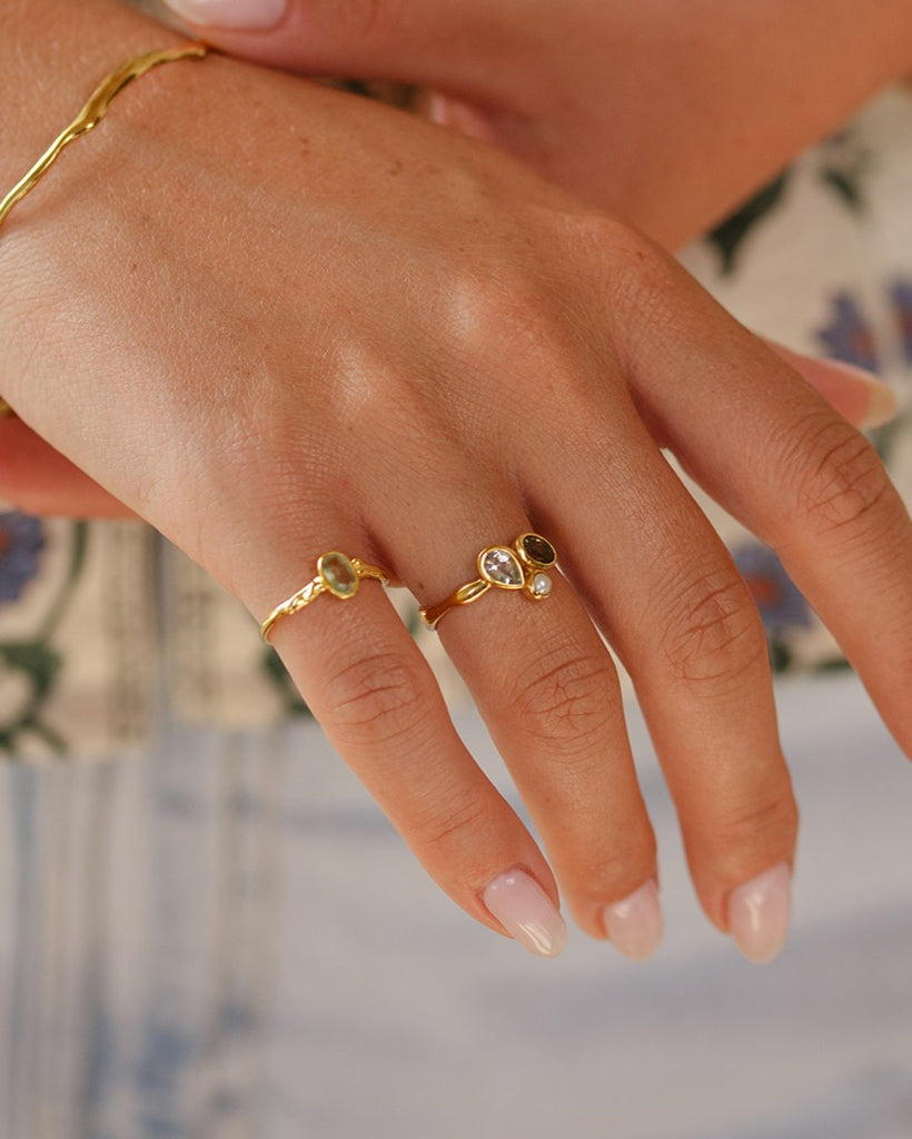Flowing Gold Vermeil complements the faceted green Amethyst of the dainty ring.